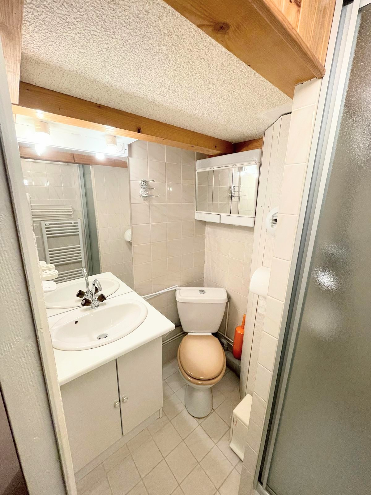 - Les salles de bains sont pourvues d’une douche et d’un sèche-serviettes et celle du haut a un sèche-cheveux .