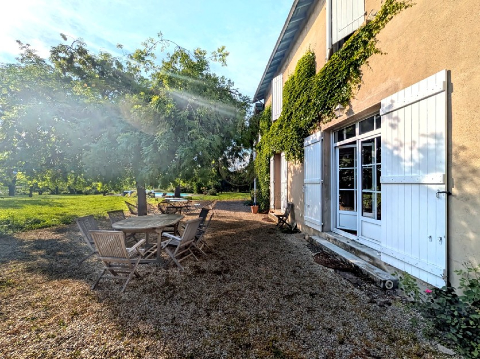 Double porte menant à la terrasse traversant EST / OUEST