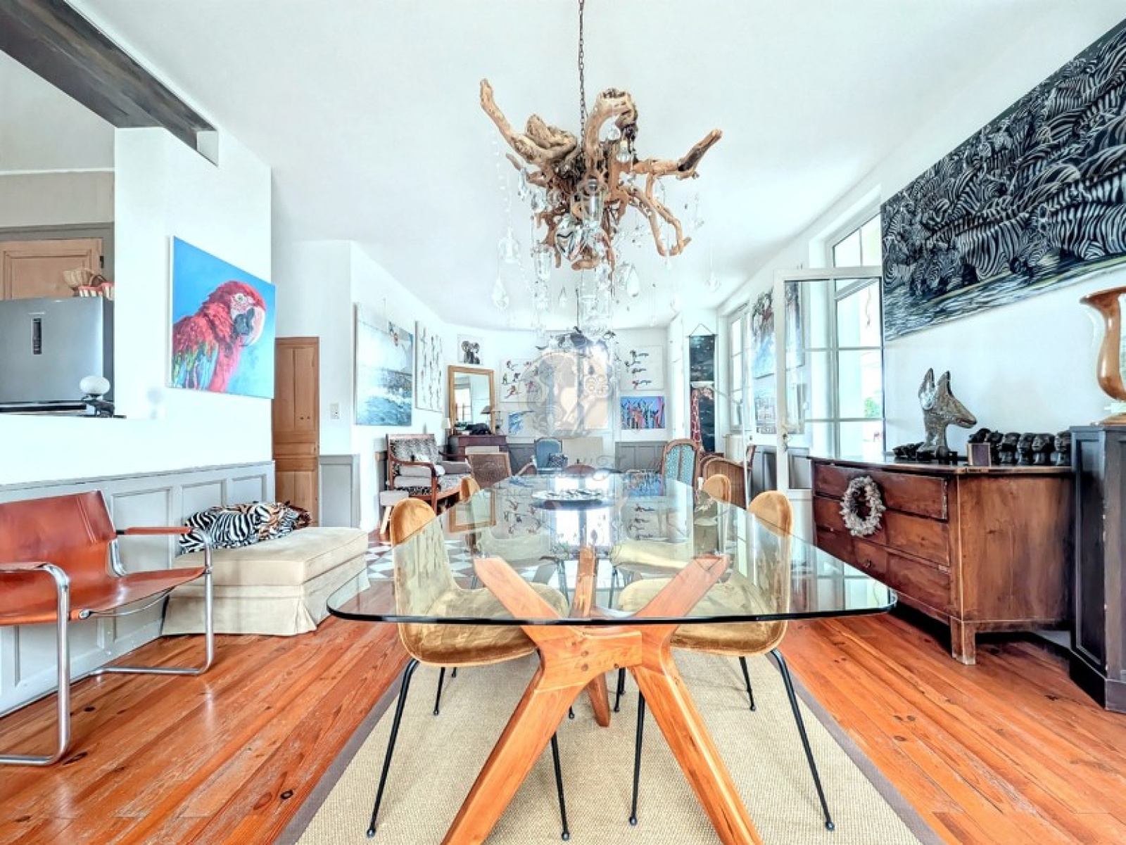 Le rez-de-chaussée s’organise autour de pièces de réception élégantes, dont un salon et une salle à manger. Vous découvrirez également une pièce conçue comme un jardin d’hiver. Véritable pièce de charme de la maison, trait d’union entre l’intérieur et le parc, permettant de profiter pleinement du cadre naturel tout au long de l’année et au gré des saisons.